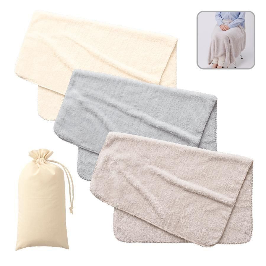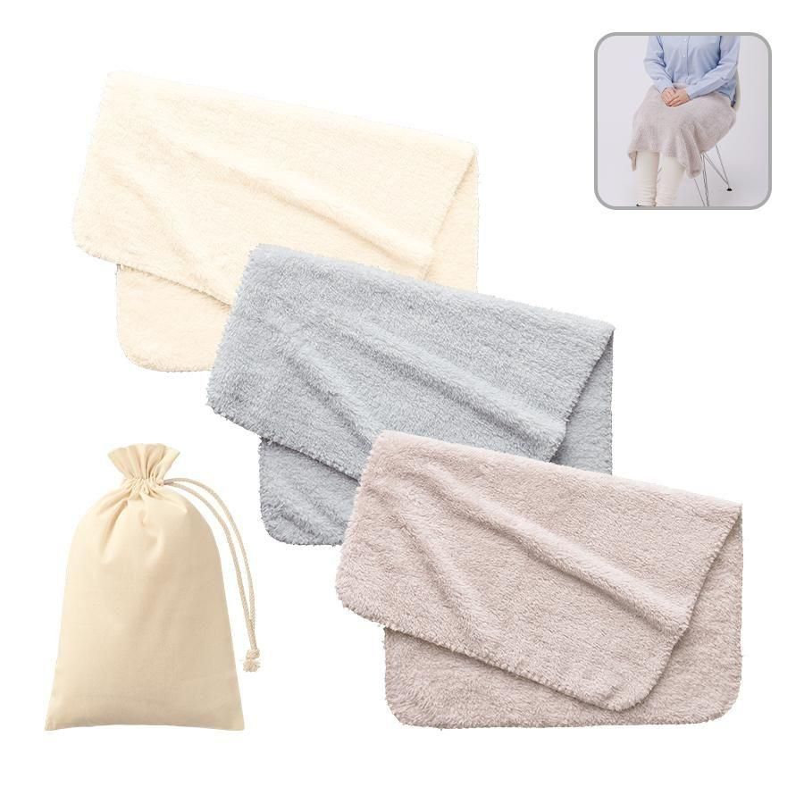 ひざ掛けにも肩掛けにも丁度いいサイズのバッグ付きブランケット。