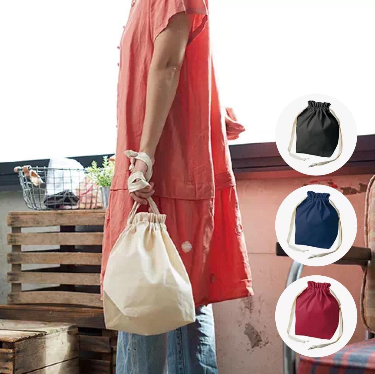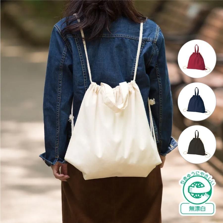 中身が透けにくい厚手コットンのカジュアル巾着リュック。