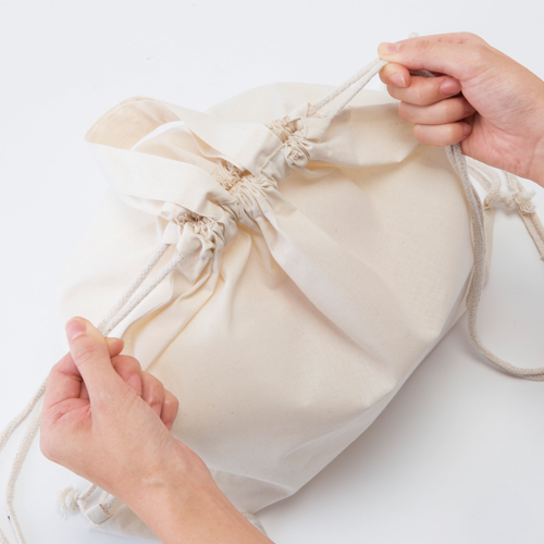 シーチング生地と比較して中身が透けにくく、厚手な低価格コットンバッグ。