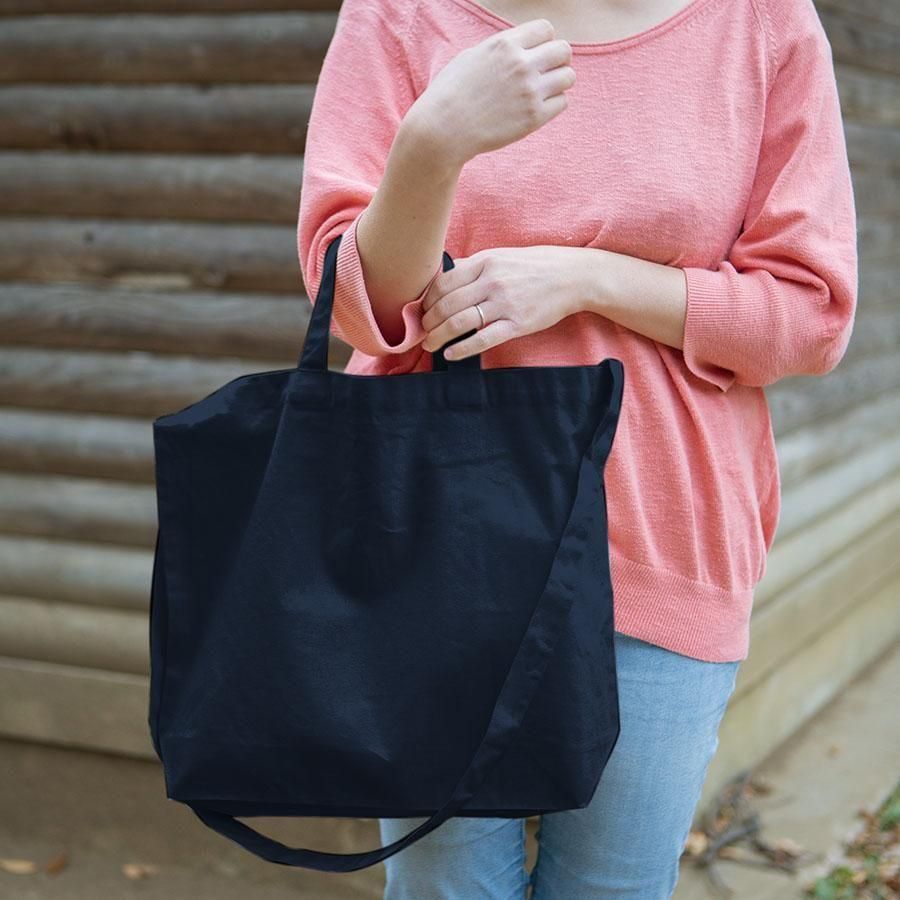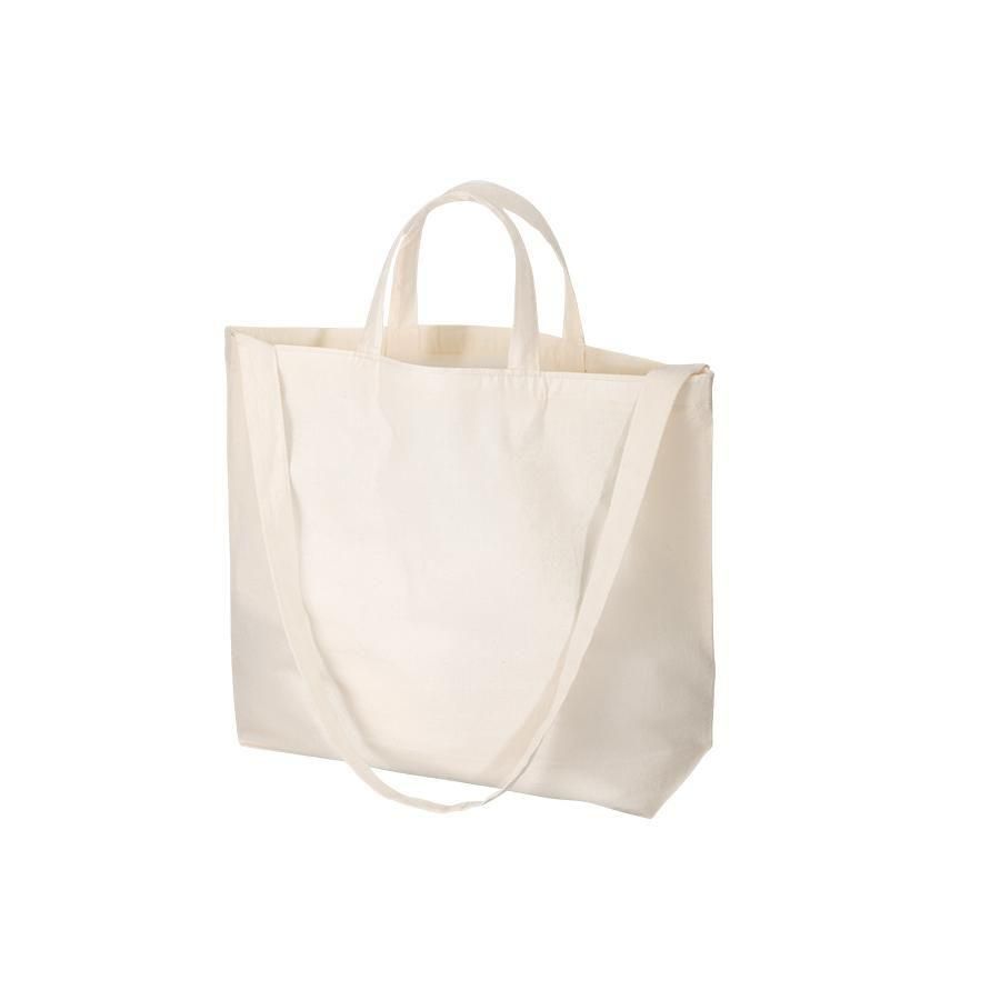 シーチング生地と比較して中身が透けにくく、厚手な低価格コットンバッグ。