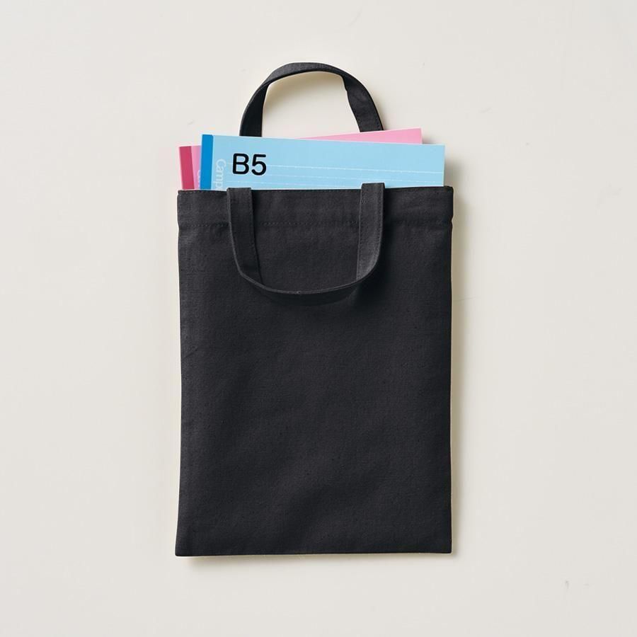Sサイズ〜LLサイズまでご用意しており、Sサイズは学校などで使うノート(B5)が入るサイズ感です。
